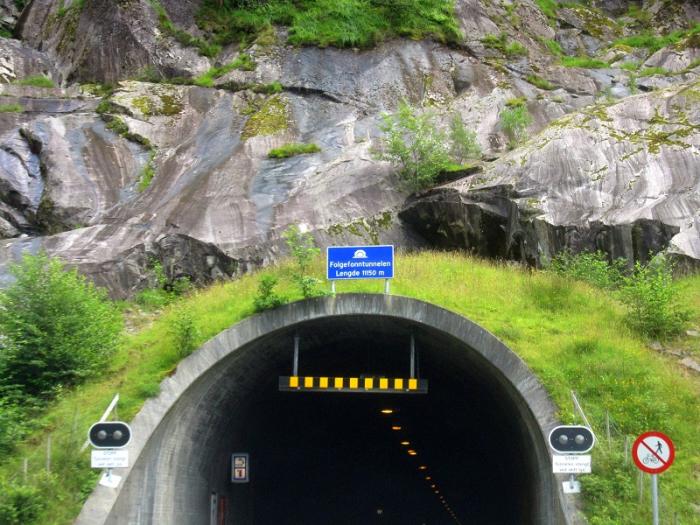 Подъезжаем к очередному платному участку. Это тоннель под ледником Folgefonna длиной 11150 метров — третий по длине в Норвегии. Построен он в 2001 году.