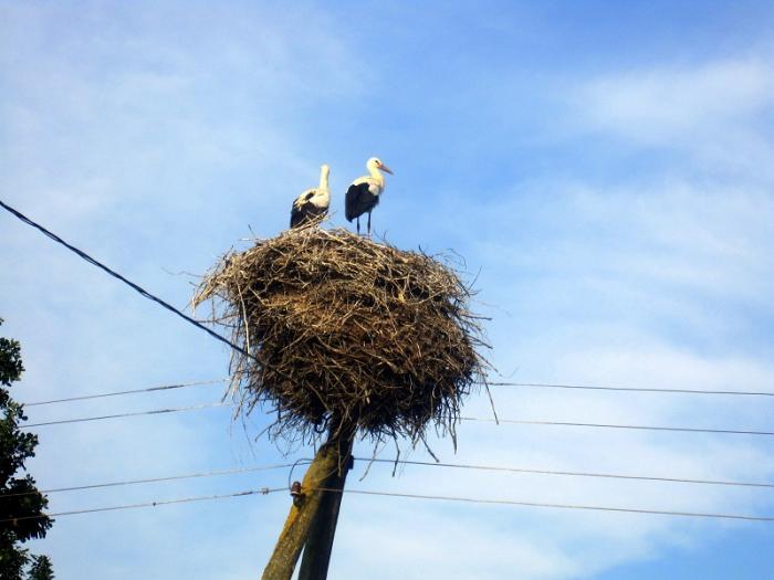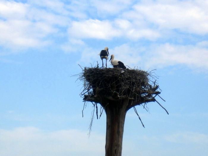 Дорога тянется полосой на юг, и тут мы замечаем на каком-то столбе аиста. Сначала подумали, что они искусственные, но аисты опровергли это мнение.