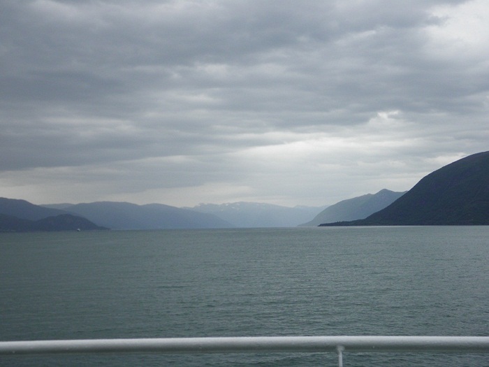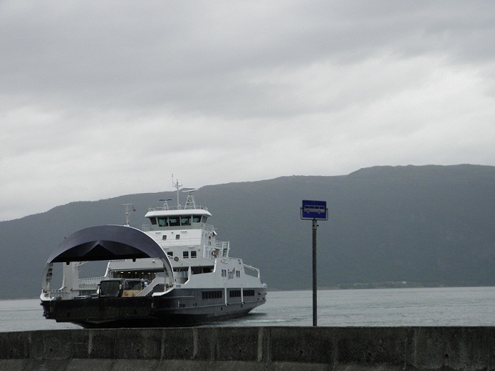Утром 3 июля, под мелким затяжным дождём, мы взяли курс на Гейрангер. Здесь уже разногласий с навигатором у нас не было, поэтому мы целиком и полностью положились на его географическую эрудицию. В качестве промежуточного аттракциона нас ждала паромная переправа через Согне-фьорд в районе «Oppedal – Lavik».