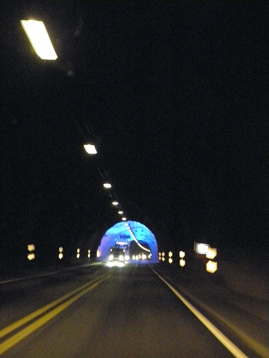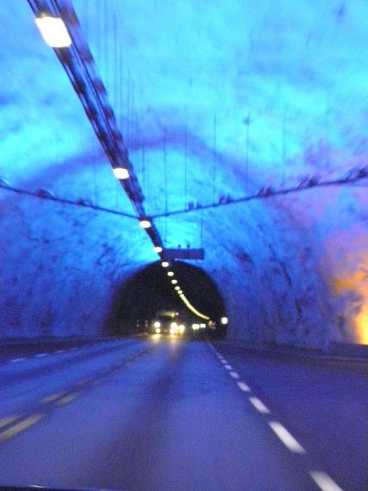 Но вот наши мучения прекратились: впереди показался въезд в легендарный Лердальский тоннель! 24,5 км под землёй (а точнее в недрах скал) – это потрясающе!!! Между прочим, самый длинный автомобильный туннель в мире. Вообще в Норвегии очень много самых разнообразных тоннелей. Оно и понятно – с таким ландшафтом иначе нельзя.