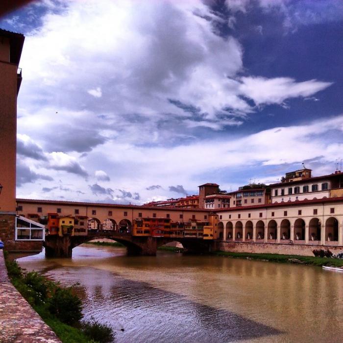 Мост Понте Веккьо. Эта совершенно не похожая на обычные мосты каменная переправа через реку Арно настолько стара, что помнит даже древнеримские времена. Правда, тогда она была деревянной, что, впрочем, не мешало ей оставаться очень важным элементом социальной жизни флорентийцев.