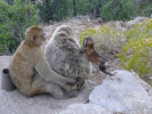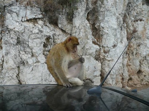 Прогулявшись по пещере, едем в сердце обезьяннего заповедника – Ape’s Den. Здесь пересекаются три артерии: автомобильно-пешеходная дорога, канатная дорога Cable Car и тропы бесхвостых макак, спокойно разгуливающих по территории. Эти Barbary macaque являются символом Гибралтара. Существует поверье, что Гибралтар будет принадлежать Англии до тех пор, пока жива хоть одна обезьяна. Вера в это настолько сильна у англичан, что во время войны Черчилль потребовал от министра колоний, чтобы в Гибралтаре было не меньше 24 обезьян. Сейчас их порядка двух сотен, и макаки чувствуют себя хозяевами на своей Обезьяней горе.