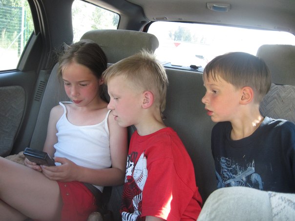 Ну, а основной экипаж и его типичные занятия можно видеть на фотографии ниже. Автор отчета судорожно пытается понять, куда ехать дальше и что смотреть дальше. Штурман-жена воспитывает детей. Ну, а дети, понятное дело, занимаются чем попало.