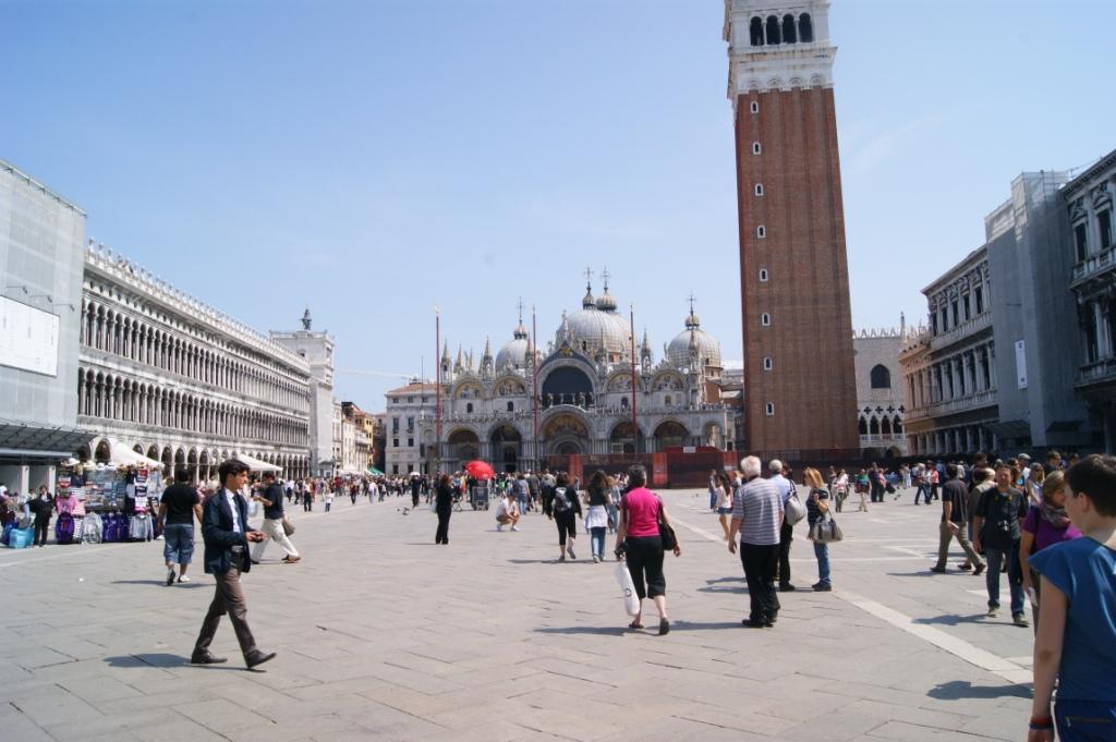 2 мая. Встали пораньше, расплатились, загрузились. День обещал быть летним. В стоимости номера не было завтрака. Позавтракали в магазине-кафе на первом этаже гостиницы. Кофе и булочки, свежеиспеченные на всех за 6евро. Я не пью кофе вообще, но этот каппучино меня покорил. Поехали. Через 10 мин мы уже въезжали на мост, который ведет в Венецию. Справа увидели большую парковку, по указателям на нее и прибыли. Оставили машину и пешком отправились к площади Сан Марко. До Piazzale Roma добрались на электричке или метро. На входе покупаешь в автомате билет 1евро на чел. при входе на эскалатор пробиваешь, поднимаешься в электричку. 5мин и приехали. Дальше ходили только пешком. Венеция прекрасна. Мы увидели ее такой.