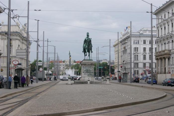 Вену мы проскочили вечером, но с утра решили вернуться, о чем позже пожалели. Вена встретила нас неприветливо. На улице было +3. Машину оставили на парковке супермаркета, купили билеты в ларьке газетном. Там же продавщица нам на карте пометила где мы есть. Сели на трамвай и прокатились немного по Вене. Еще немного прогулялись. Было очень холодно, а мы очень легко были одеты.