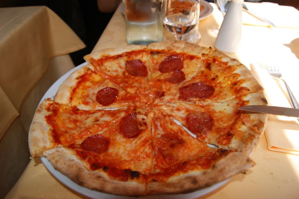 Погуляли, посмотрели. Ушли немного в сторону, решили, что подходит время пообедать. Очень много кафе и ресторанов с русским меню. Маленький проснулся, и впервом же кафе мы сели обедать. В те же 30 евро вошло порция первого, 2порции макарон, пицца (она нам правда не очень понравилась)и 2 бутылки воды.