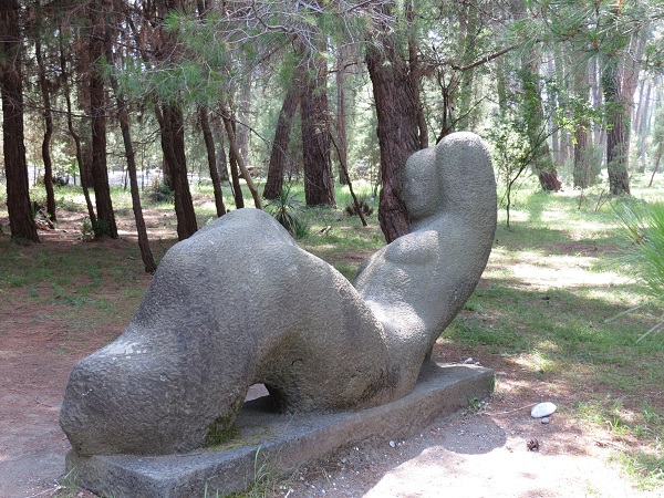Каменные фигуры в сосновой роще