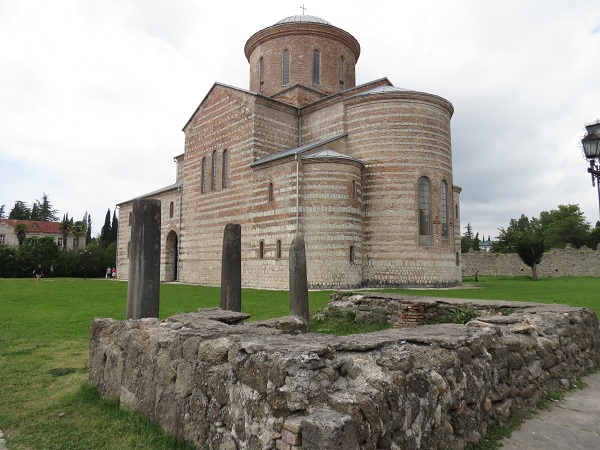 Первый же храм, построенный для епископа Статофила, был датирован IV в. Его пол, площадью около 60 кв.м, был украшен мозаикой, состоявшей из геометрических орнаментов и сюжетных композиций. Мозаика была выполнена из камешков-кубиков местных пород двенадцати цветов и является шедевром древнего искусства. К сожалению, большая часть найденных фрагментов мозаичного пола среди прочих ценностей были вывезены в Грузию во время грузино-абхазского конфликта.