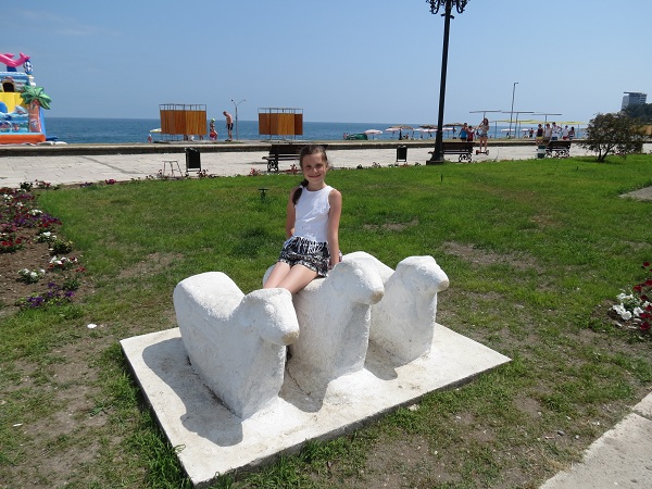 От «Великого Питиунта» мы направились на набережную к знаменитой фигуре «Ныряльщики». Кстати, вход на территорию прибрежной зоны платный.