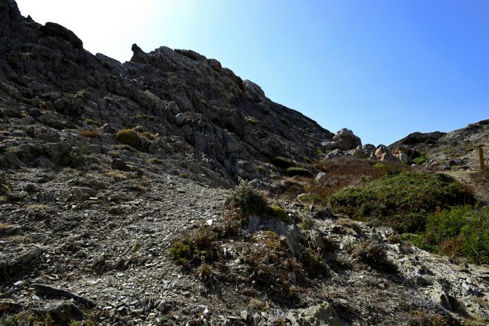 Больше, чем трудности на тропе, дискомфорта доставляла жара. Раскаленная сковорода и снизу и сверху. Под ногами хрустели похожие на черные пластинки камни, издающие какой-то стеклянный звук «хррр-хррр».