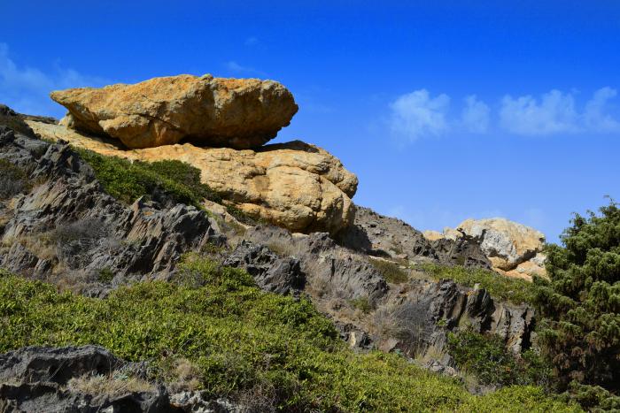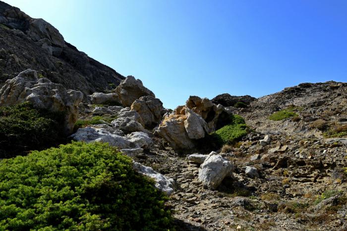 Особо хочется отметить окружающие пейзажи. Когда говорят о средиземноморской бухте, то представляется пейзаж, наполненный красками и запахами. А вот и нет. Знойная, раскаленная каменистая почва поросшая оливами и скудной растительностью. Глаз радуют только белоснежные дома на фоне нереально синего моря, сливающегося на горизонте с синим небом.