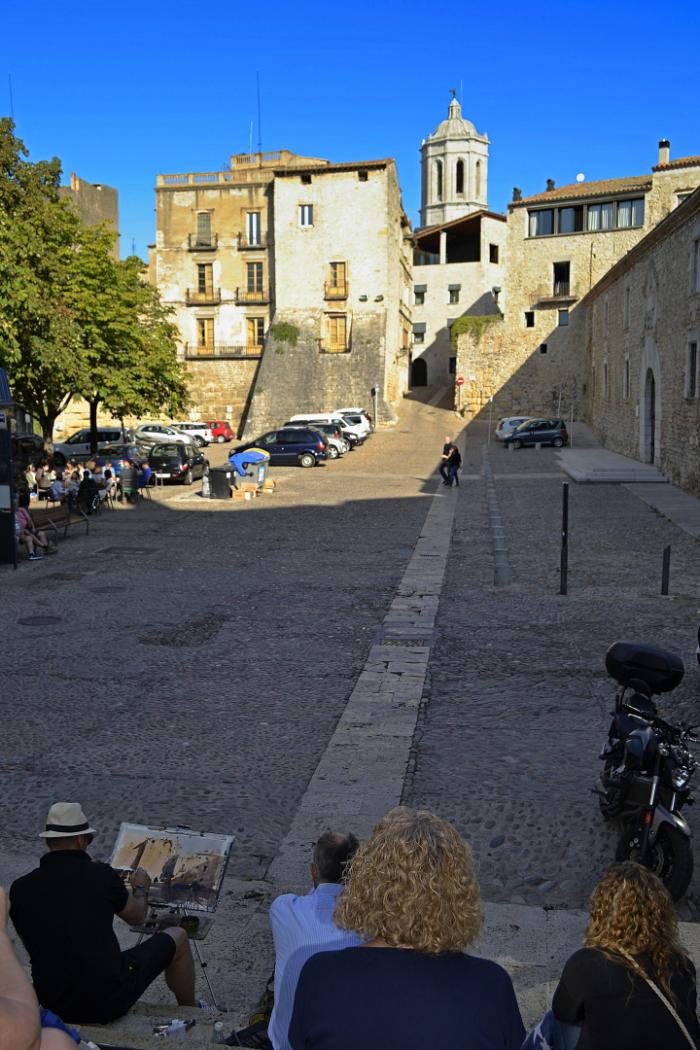 Отсюда я прошла к одному из самых красивых барочных ансамблей Испании — зданию монастыря святого Доминика, находящегося на улице Pujada De Sant Domenec, неподалеку от старинного здания университета, и являющегося, наверное, одним из самых популярных мест Жироны среди художников. Один такой художник творил, сидя на ступенях. Вместе с остальными туристами, усевшимися вокруг него, и я немного понаблюдала за творческим процессом.