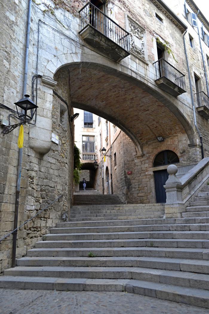Пролет выводит к высокой каменной лестнице, поднимающейся каскадами к стоящей рядом иезуитской церкви Сан Марти Сакоста (Sant Marti Sacosta).