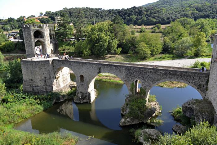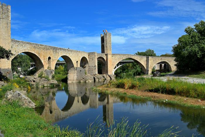 Укрепленный мост Бесалу (XI-XII вв.) над рекой Флувиа, с 7-ю массивными арками и гранеными зубчатыми башнями – настоящая эмблема города. Пожалуй, это самый впечатляющий средневековый мост Каталонии, самое фотографируемое архитектурное сооружение города, да и самое, наверное, красивое. Мост настолько фотогеничен, что его хочется фотографировать со всех ракурсов.