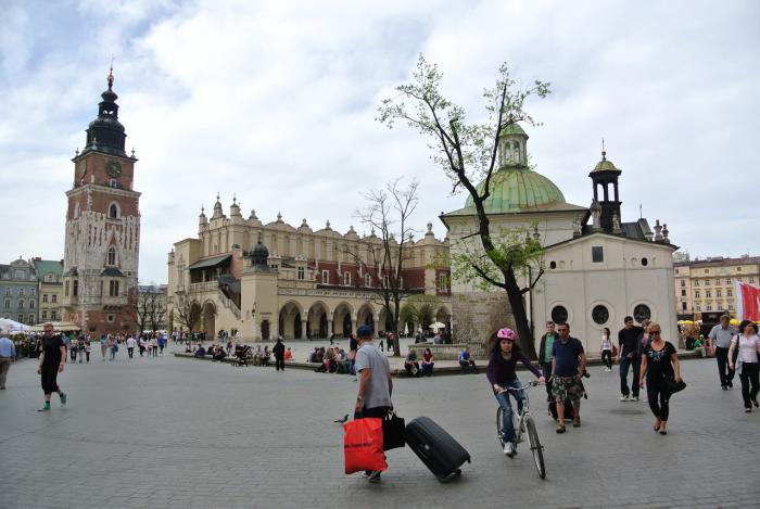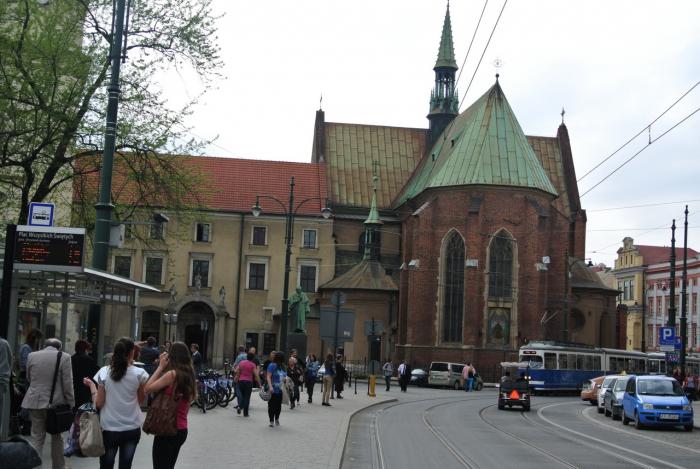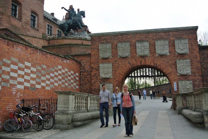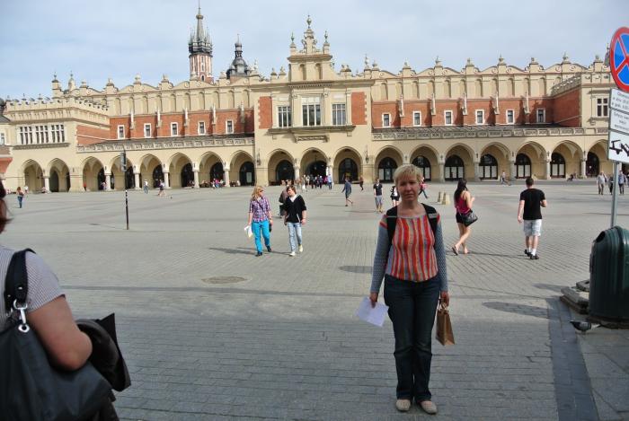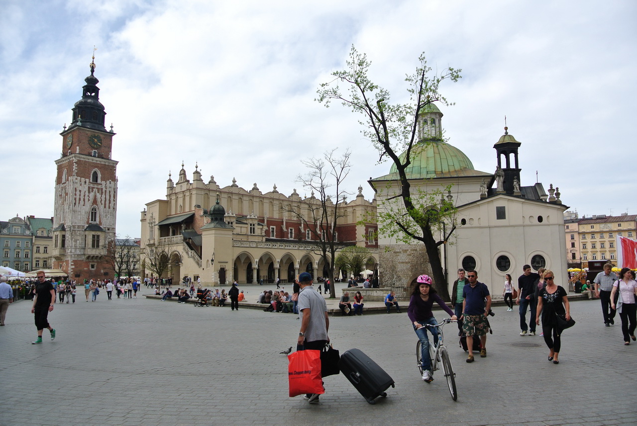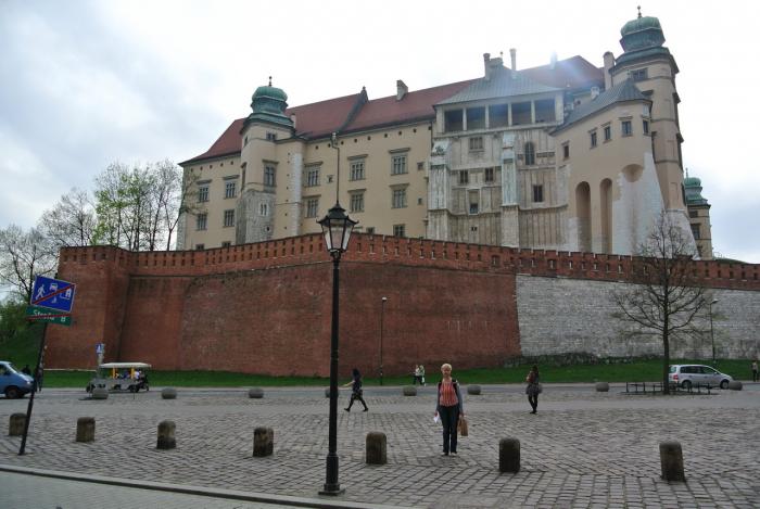 Дошли до Рыночной площади, по её периметру которой расположились Мариацкий собор, костел святого Войцеха, дворец Збараских, Ратушная башня. В центре её памятник Адаму Мицкевичу и бывшие торговые ряды Сукенницы (сейчас там разместился Народный музей). Прошли по Королевской дороге до холма Вавель, где находится Королевский Замок, погуляли по его двору, осмотрели Собор святых Станислава и Вацлава.