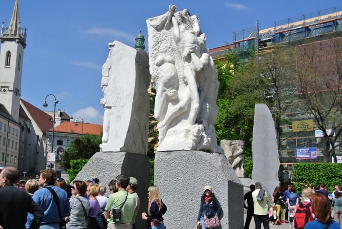Очень интересен Мемориал против войны и фашизма, работы Альфреда Хрдлички, установленный на Площади Альбертины. На фоне благообразных старинных зданий угловатые формы монумента вызывают особые ощущения, создавая архитектурный «диссонанс» на старинной площади. Памятник жертвам нацизма установлен здесь не случайно. До войны перед Альбертиной стоял жилой дом. В 1945 г. в его подвалах от бомбёжки погибли сотни людей. Мемориал увековечил их боль и страдания.