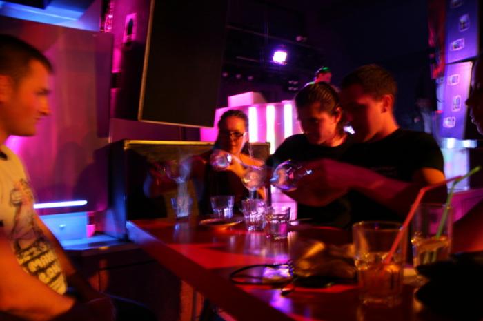 Наша LenKA настолько чувственно танцевала вокруг «go-go стакана», что ChorohOff заподозрил в ней латентную стриптизёршу, что непреминул озвучить…был перфоманс с поеданием семок на танцполе, танцы Mokokosa и прочий угар…Знакомство со странными Норвежцами, которые подошли к нам с фразой «ой-крэйзи-самбука-файер-рашен!!!», после чего пошёл обмен любезностями на уровне «Калашникофф-тра-та-та-та-та, водка, матрёшка, икра», Беломор нашел в них благодарного слушателя и подсел им на уши минут на 40 )))