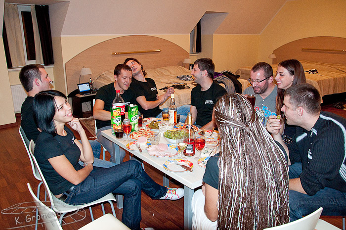 0,7 литра ушли минут за 25-30 и за столом появилось ещё литр водочки…это по 0,85 в лицо ) …и тут я понял что безнадёжно проигрываю…дальше писать не могу, потому что плохо помню…оставляю эту часть рассказа на наших девушек, т.к. только они меня спасли от водки…я уже хотел спасаться через окно, думаю лучше они расскажут…это был абсолютный проигрыш Ярославля в Риге (