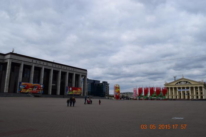 А вот два здания на Кастрычницкой площади. Здание справа действительно похоже на дворец, а вот серое мрачное здание «Дворец Республики» больше какой-то мавзолей напоминает.