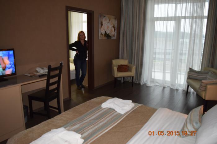 Из Калуги выехали поздно, в 11 часов. Высыпались, потом на завтрак ушёл почти час. Завтрак заказываешь вечером на рецепшене. Можно выбирать из четырёх комплексов. В ресторан мы пришли около 9 часов и минут 40 ждали пока нам подадут завтрак. Так долго потому, что народу много, а официант был один. Сказался фактор всероссийских длинных праздников, обилие гостей, большие компании, масса детей. И если честно, то завтрак был какой-то «так себе», на троечку.