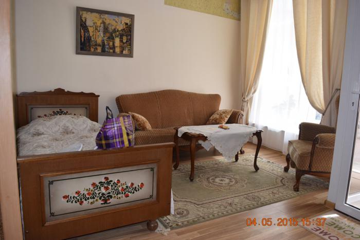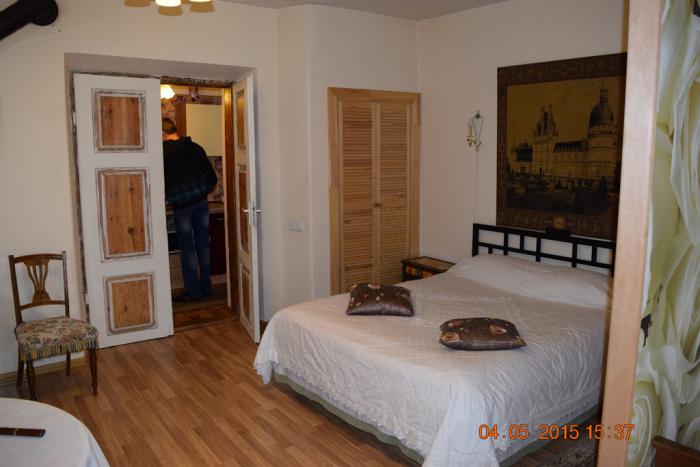 Как мы видим, апартаменты находятся на первом этаже старого дома. Интерьер выдержан в том же духе, старая мебель, старые гобелены, даже запах какой-то антикварный. Чего только стоит печка, которой зимой отапливают помещения. Конечно не «Хилтон», но для погружения в атмосферу Старого Вильнюса, как раз то, что нужно. Очень приветливая хозяйка, которая живёт рядом. Нам очень понравилось. Единственная проблема был слабый сигнал Wi-Fi. Ну и фиг с ним.