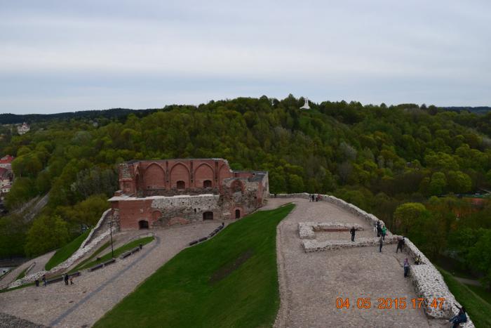 Здесь прекрасно угадывается и башня Гедиминаса, и верхний дворец, и оба арсенала, кафедральный собор, а за ним нижний дворец. Перед собором как раз та башня, на основании которой сейчас находится колокольня (на фотографии справа напротив собора).