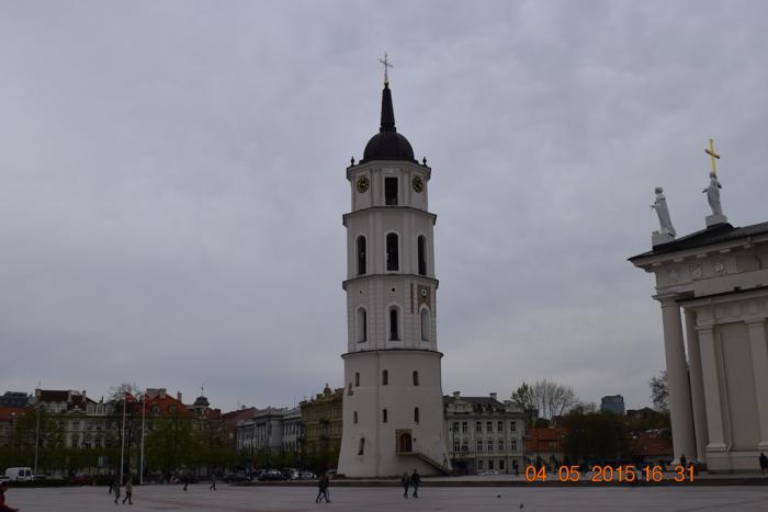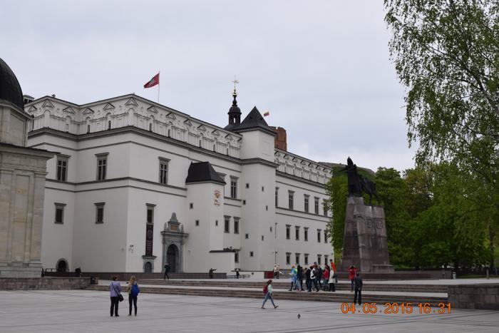 Здесь всё очень компактно. Кафедральный собор, за ним Дворец правителей Великого княжества Литовского. На заднем плане, на Замковой горе виднеется башня Гедиминаса, один из символов Вильнюса. Но мы туда заберёмся чуть попозже.