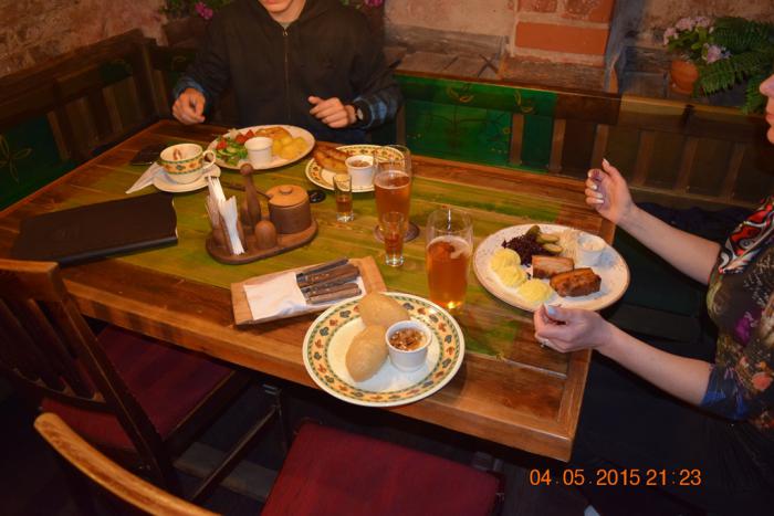 Ну всё, на сегодня хватит духовного, пора и о бренном теле подумать, а по сути продолжить знакомство с достопримечательностями страны — с её кухней. На мой взгляд, кухня это одна из основных достопримечательностей. И пусть меня предадут анафеме сторонники здорового образа жизни, но мы в девять вечера пошли есть цепелины со шкварками и запивать их литовским пивом.
