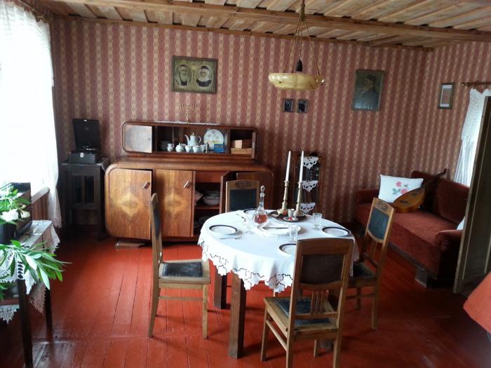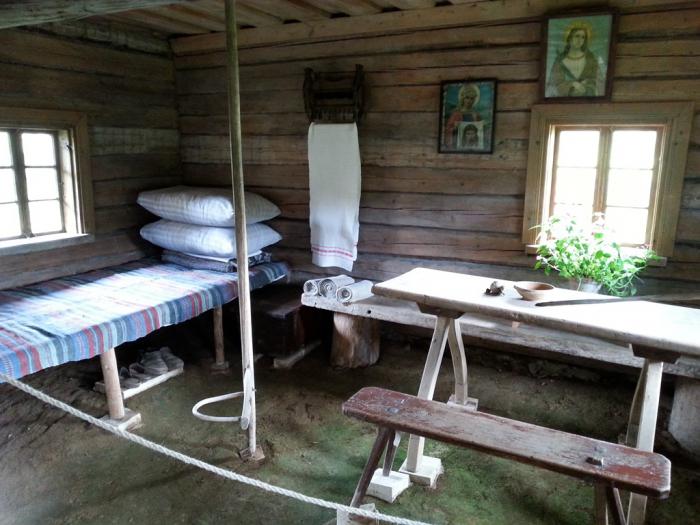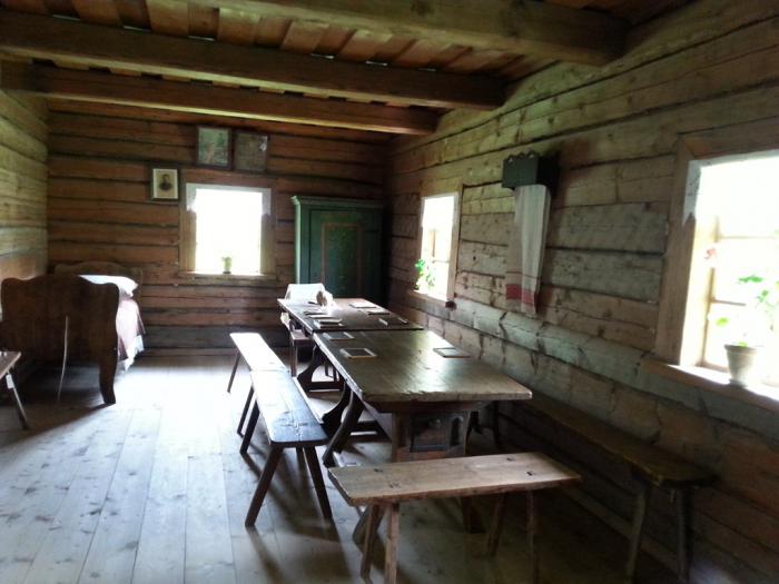 Учебный класс деревенской школы. Здесь же учитель и жил, в углу его кровать, а на стене его фотопортрет.