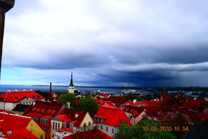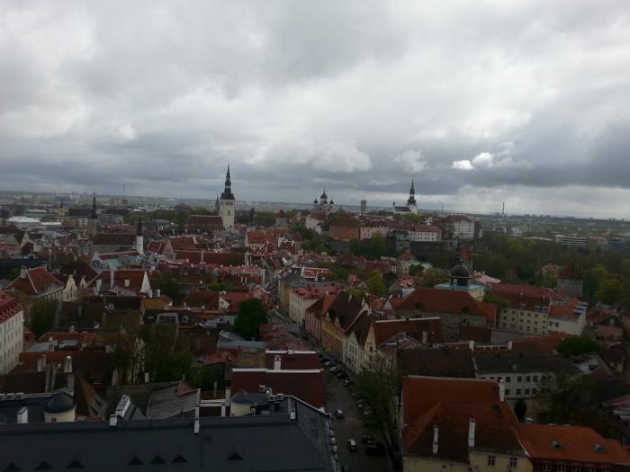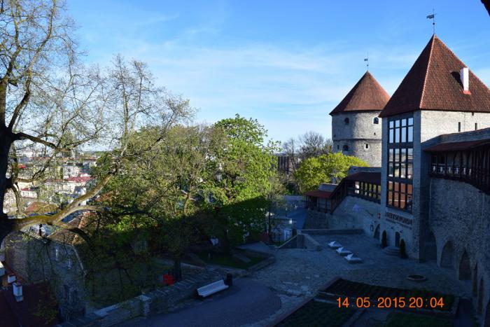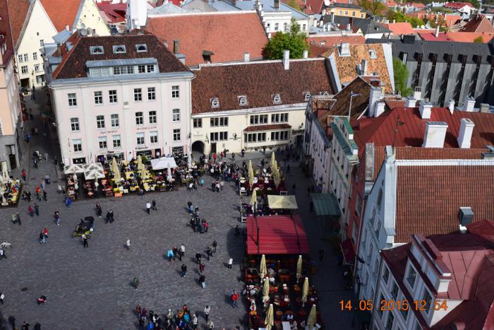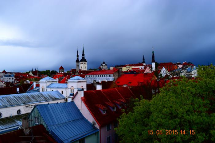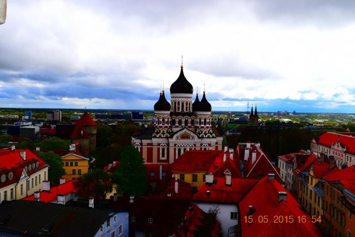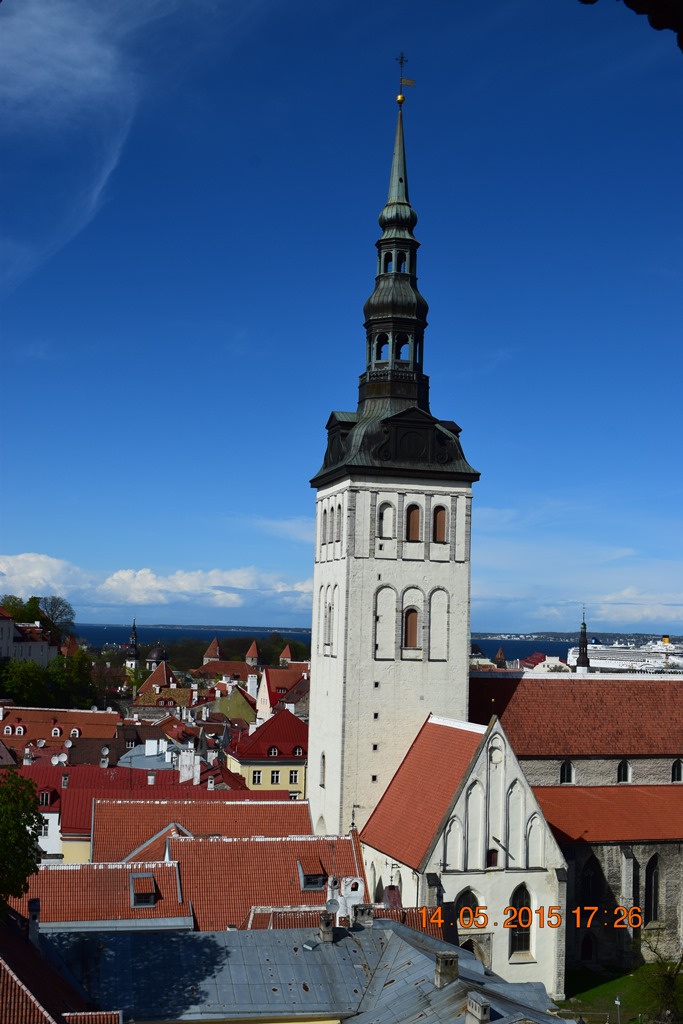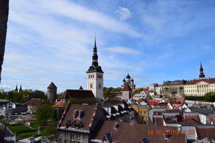 В Старом городе всё очень компактно. Справа на фотографии башня Домского собора, левее купола собора Святого Александра Невского. Ещё левее церковь 13 века, в которой сейчас музей церковного искусства Нигулисте и левее неё круглая башня Кик-ин-де-Кёк.