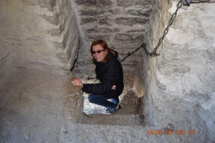 Наверху этой безымянной башни, куда мы сейчас залезли, есть винный бар. Когда мы спускались, я недоумевал, как здесь после выпитого вина можно спуститься без травм. Мы трезвые еле-еле, судорожно цепляясь за стены и цепь, исполнили этот трюк. Улыбка вымученная, от безысходности: «хочешь-не хочешь, а спускаться надо».