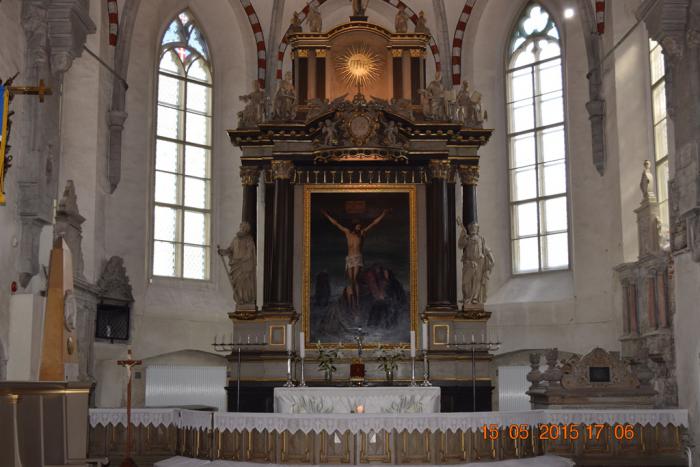 Церковь долго восстанавливали. Алтарь сделан в самом конце 17 века.