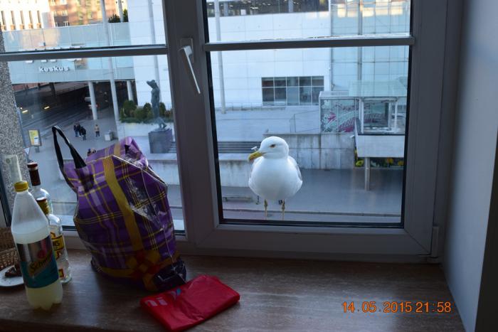 А вечером к нам в гости прилетел коренной житель, который живёт на крыше. Только в Стокгольме это Карлсон, а здесь баклан.