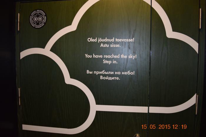 Подъём на смотровую площадку башни по карте «TallinnCard» бесплатный. На выходе из лифта вас встречает несколько двусмысленная надпись.