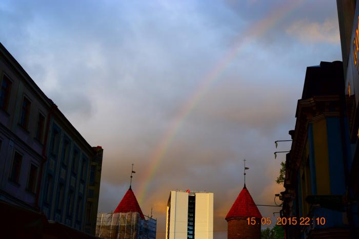 Вначале этой главы я написал, что фотографии Вирусских ворот у меня нет по причине строительных лесов, а оказалось что есть. Как раз на этой фотографии радуга над этими воротами, а левая башня в строительных лесах.