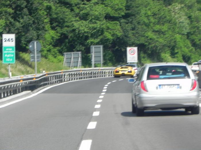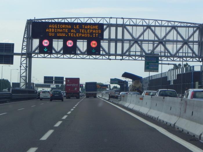 До Падуи дорога бесплатная, а там после выезда на трассу А13, пришлось держать рядом пластиковую карту. Заезжаешь на автобан, регистрируешься – получаешь магнитный билетик, по которому и расплачиваешься после съезда с трассы. С нас за наш отрезок сняли 31,2 евро – это самый дорогой участок дороги за всё путешествие. Итальянский автобан, по 2–3 полосы в каждом направлении, не дал расслабиться – движение довольно плотное, и хоть поток идёт 110–130 км в час, но иногда приходилось замедляться из-за сужений дороги: то ремонт, то резвые итальянские парни на жёлтых «Ламборджини» устраивали «шашки» на дороге.
