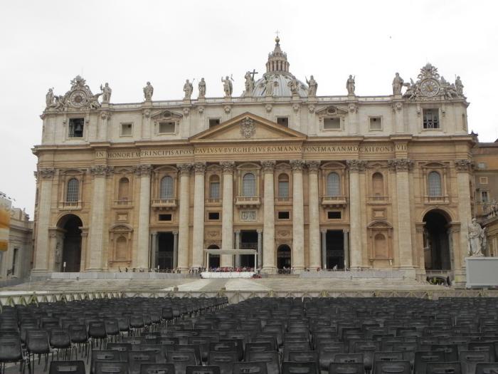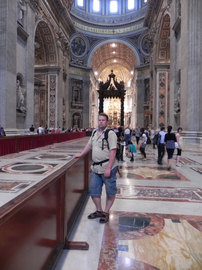 Свою экскурсию по Ватикану мы начинаем с посещения Священных гротов, где находятся усыпальницы 20 пап, одного короля, двух королев, многочисленных кардиналов и епископов. У усыпальницы предпоследнего, 264-го по счёту, папы Иоанна Павла II очень много людей молятся и возлагают цветы. После гротов мы поднялись в сам собор, мощью, величием и убранством поражающий все уведенные до этого. Внутри чувствуешь, насколько ничтожен ты перед могуществом церкви, именно так, по замыслу великих творцов, и должен чувствовать человек, попадающий сюда. Незабываемое ощущение…