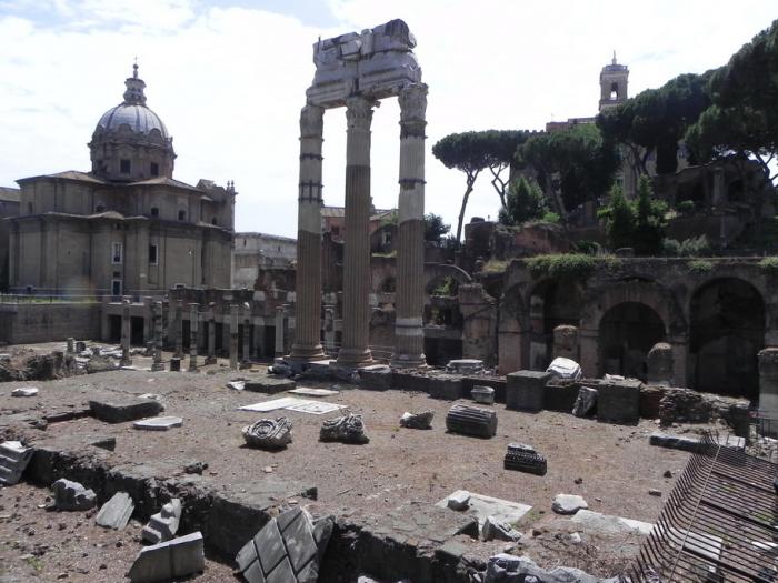 Солнце распаляется не на шутку, и мы забираемся в тень на отдых, а потом, повернув налево от Витториано, по аллее Императорских Форумов направляемся погулять по развалинам Римского Форума.