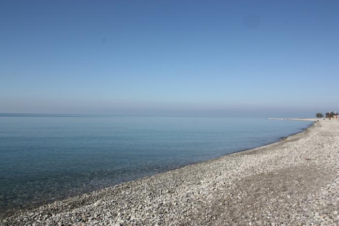 Температура +23 градуса, голубое небо, солнце. После небольшого отдыха идем к морю. Улица к морю пустынна, многочисленные кафе, киоски закрыты до следующего сезона. Работают два продовольственных магазина. Море спокойно, вода чистейшая, пляж галечный. На пляже загорают 2-3 человека. Вдоль берега на расстоянии 20-30 м от него возвышаются кучи изломанных деревьев, ветвей, корней. На прошлой неделе был сильный шторм, который и принес эту древесину. Как мы были правы, что перенесли поездку к морю на неделю!