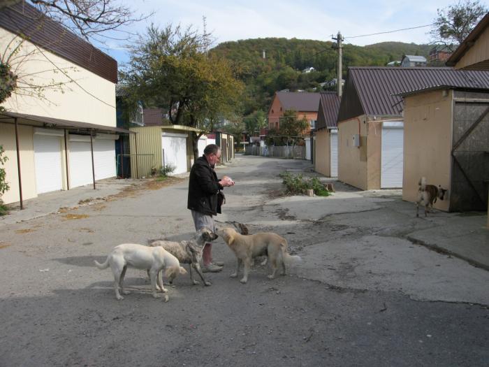 Отдыхаем, загораем на пляже, искупаться не рискнули, хотя вода не очень холодная. Температура днем 20-22 градуса. Съездили в Лазаревское. По улице в Аше ходит компания из 5-6 бездомных собак. Все очень ласковые, доверчивые к людям, но оставленные уехавшими пляжниками. С мольбой заглядывают в глаза и виляют хвостами. Мы их подкармливали все время, покупали хлеб и лепёшки, едят с удовольствием. Затем всюду нас сопровождали. Что характерно, все из этой компании суки (женская особь). А во дворах при должности охранниковисключительно кобели (мужская особь).