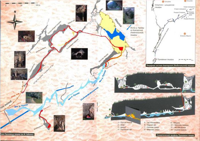► Здесь берет начало гидрографическая система реки Пунквы; являются составной частью самой обширной и самой длинной пещерной системы в ЧР — Аматерской (Любительской) пещерной системы (длина 33 км); включают в себя и дно всемирноизвестной пропасти Мацоха (Мачеха), которая имеет глубину 187,5 м (из того сухая часть 138,5 м).