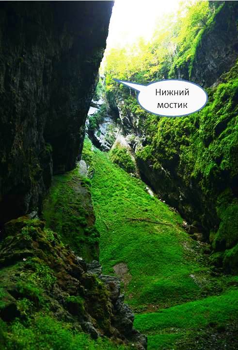 А пока – продолжаем знакомиться с пропастью Мацоха с Нижнего мостика. Кстати говоря, именно с этого места совершались первые исследовательские спуски на дно пропасти: