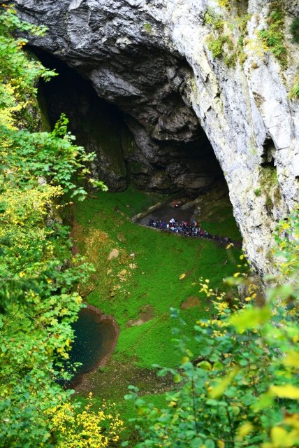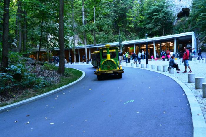 Чтобы добраться до входа в пещеру, можно либо идти пешком по маркированной тропе, либо воспользоваться фуникулером. К сожалению, в тот день фуникулер не работал, так что всем посетителям пришлось топать и вниз, и вверх.
