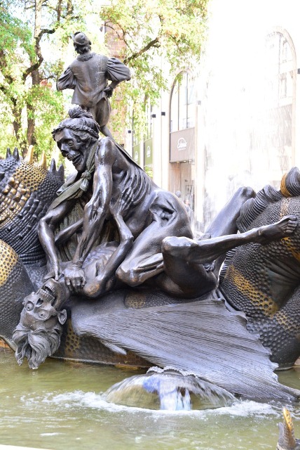 Второе разочарование: знаменитый Прекрасный фонтан (Прекрасный в данном случае – имя собственное) оказался всецело во власти реконструкции. Нам прямо не везет с баварскими «маст си»: то Нойшванштайн в леса упрячут, то вот фонтан…