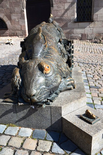 Только ленивый, побывав в «самом немецком из всех немецких городов», не запечатлел эту тушу, напоминающую, скорей, героя Льюиса Кэрролла, нежели чем изящное творение дюреровских рук.