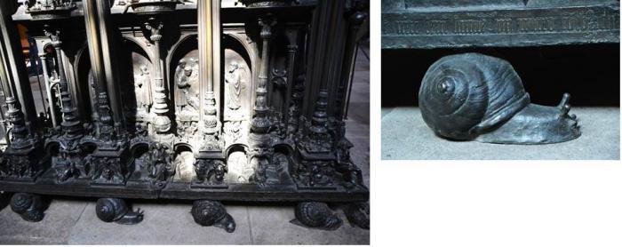 Основание надгробия покоится на фигурах улиток.