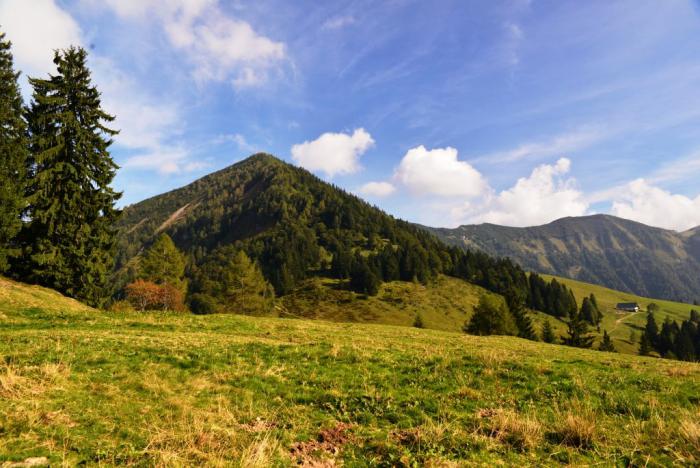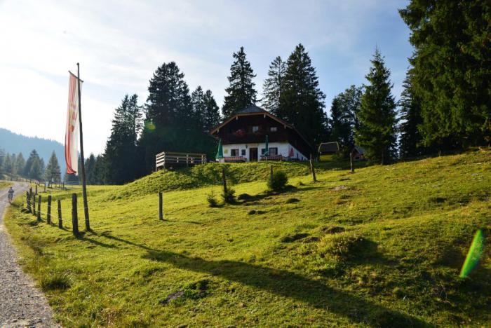 Конечно, одной ягодой целый день не продержишься, поэтому на австрийских тропах крайне удачно расположены такие заведения, которые я все не знаю, как обозвать. Это и не кафе, и уже тем более не ресторан, у немцев есть понятие «гаштек» — может, оно? В общем, стоит себе в чистом поле домик, перед ним – деревянные столы с лавками, тетки в дирндлях и девушки в кожаных шортах разносят съестное: как правило, без затей. А ведь кружка пива (3,50 евро) с бутербродом со шпеком (4 евро) или стакан молока (0,5-2 евро) с яблочным пирогом (2,5 евро) могут в корне повлиять на мироощущение!