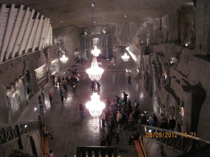 Проснувшись утром 8 сентября, решили съездить в соляную шахту в Величке. Город Величка находится в 10 километрах к юго-востоку от Кракова. Соляная шахта в Величке месторождение каменной соли, которое разрабатывалось с XIII по XX века. Она представляет собой коридоры и галереи на семи подземных уровнях на глубине от 57 м до 198 м общей протяжённостью более 200 км. Приехав к шахте мы купили билеты и буквально через десять минут отправились на экскурсию с русскоязычной группой. Экскурсия очень понравилась. Особенно впечатлила Часовня Святой Кинги была создана в 1896 году усилиями шахтёра Юзефа Марковского. Святая Кинга, покровительница соледобытчиков в Польше, была канонизирована Папой Иоанном Павлом IIво время одного из его последних визитов в страну. Часовня расположена на глубине 101 метр, её размеры: длина — 54 метра, ширина — 15-18 метров, высота — 10-12 метров. В часовне расположены фигуры святой Кинги и других местных святых, соляная копия «Тайной вечери» Леонардо да Винчи, а также много других скульптур на религиозную тему. Часовню освещает люстра из соляных кристаллов. В часовне расположена соляная скульптура Иоанна Павла II. Часовня действующая. В ней проходят службы по воскресениям и по праздником, любой желающий может на них попасть. Несколько фото из соляной шахты: