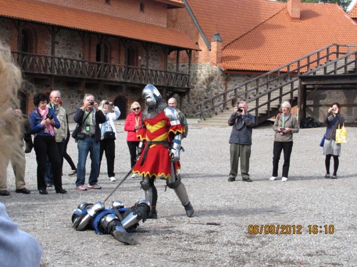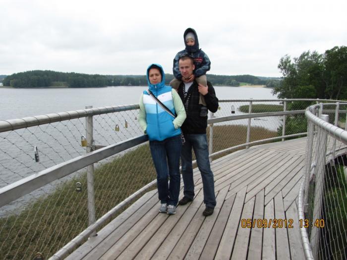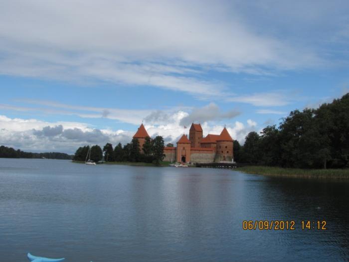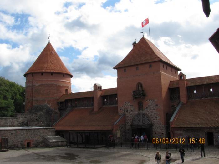 Трака́йский за́мок — самый большой из сохранившихся в Литве старинных замков. Находится в древней резиденции литовских князей — в городе Тракай. Внутри замка с 1962 года находится музей истории Тракая и сувенирные лавки. Ни разу за всю историю врагам не удалось его завоевать. Перед походом в замок мы решили прокатиться по озеру Гальве на небольшой яхте. Очень было интересно, особенно рассказы хозяина яхты( Литовца польского происхождения). Потом мы прошли на территорию замка….
