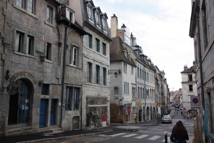 Pontailler-sur-Saone оказался настолько неинтересным, что мы там даже не останавливались и поехали сразу в Безансон. Этот город находится в 95 км на восток от Дижона в излучине реки Ду. Безансон – административный центр региона Franche-Comte, в состав Франции вошел в 1678 г. Известен с древне-галльских времен как крепость Vesontio (Bisontium). В 58 г до н.э. Цезарь одержал здесь победу над германским вождем Ариовистом. В римские времена Безансон становится одним из важнейших стратегических пунктов римлян. В 5 веке город перешел к бургундам, в 1032 году присоединен к Священной Римской империи, с 1043 года получил права вольного имперского города, в 1648 году перешел к Испании, после этого к Франции. От древнеримского периода сохранились названия многих улиц города, остались развалины форума, рядом с которым мы припарковались на бесплатной стоянке. Здесь же неподалеку сохранилась украшенная барельефами триумфальная арка императора Марка Аврелия (Porta gigra), вписанная в улицу. Сразу за входом в арку находится Кафедральный собор Св. Иоанна (11-13 в.в.), в северной его части расположены три капеллы и несколько отдельных залов. Внутри собор отделан бело-коричневым мрамором, золотыми барельефами, в соборе располагаются 35 картин французских художников 18 века.